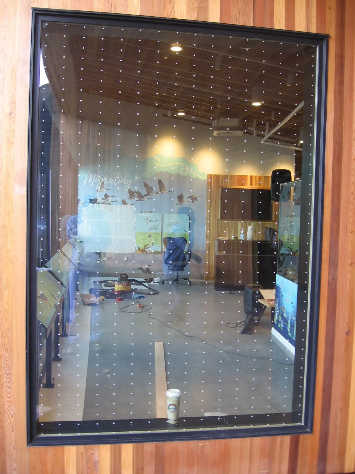 When considering new construction and renovations, a number of bird-friendly glass options are available, including acid-etched glass, glass with ultraviolet patterns, fritted glass, or glass with printed patterns. Keep in mind that implementing bird-friendly design from the beginning is much less costly than retrofitting.